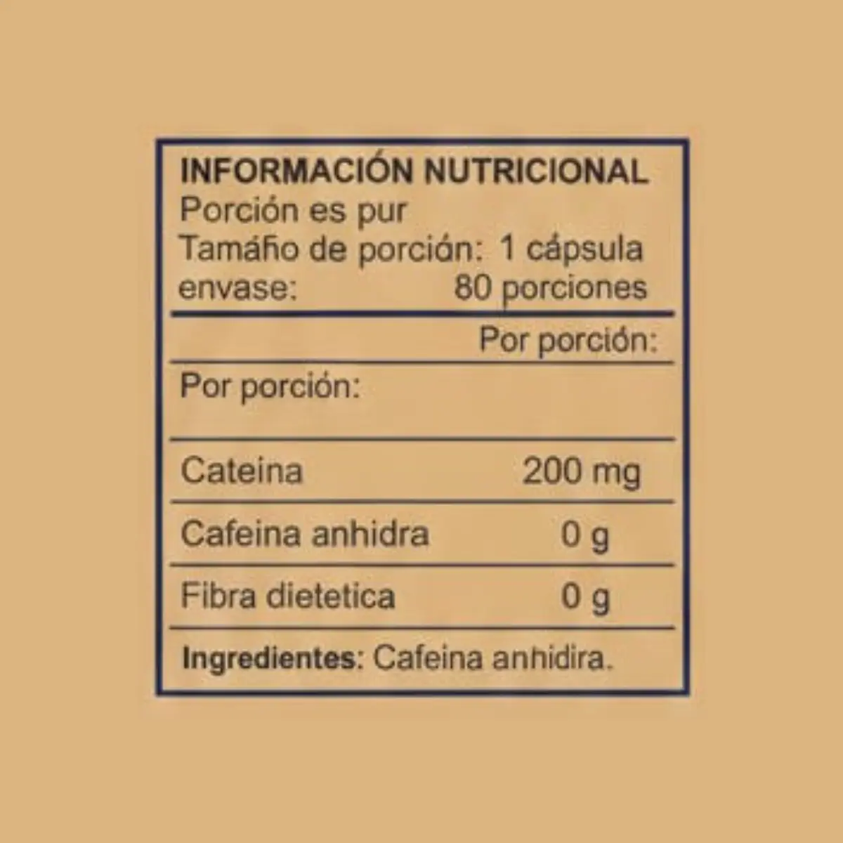 Cápsulas con cafeína anhidra para alta carga de energía y concentración.