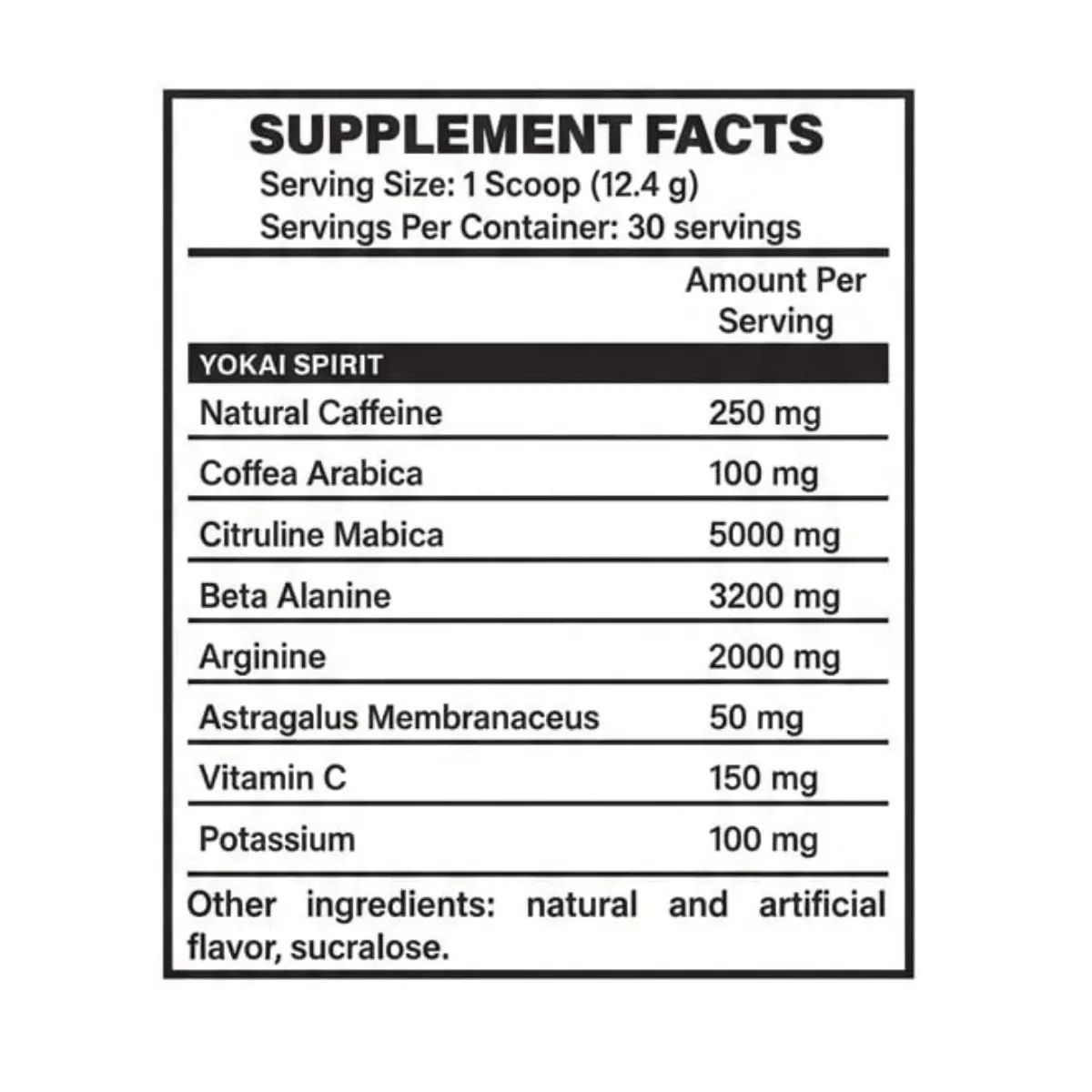 Eleva tu nivel de entrenamiento con Yokai. Formulado con una potente mezcla de estimulantes y vasodilatadores, este pre-entreno está diseñado para proporcionarte un bombeo muscular intenso, energía explosiva y una fuerza superior durante tu rutina.